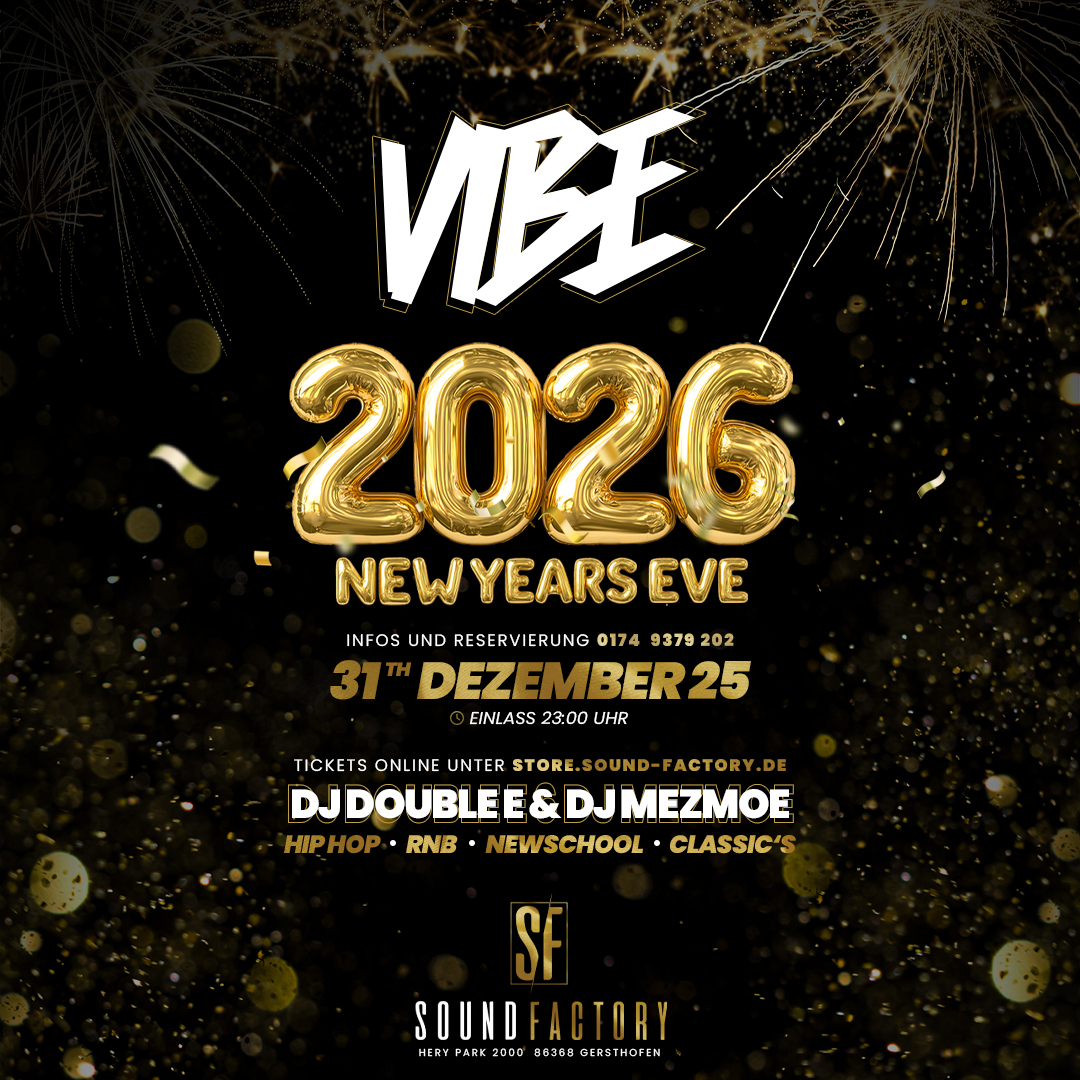 Silvesternacht 2026 in der Sound-Factory Gersthofen! Zusammen mit vibe (4liveEntertainment) feiern wir die diesjährige Silvesterparty gemeinsam!!